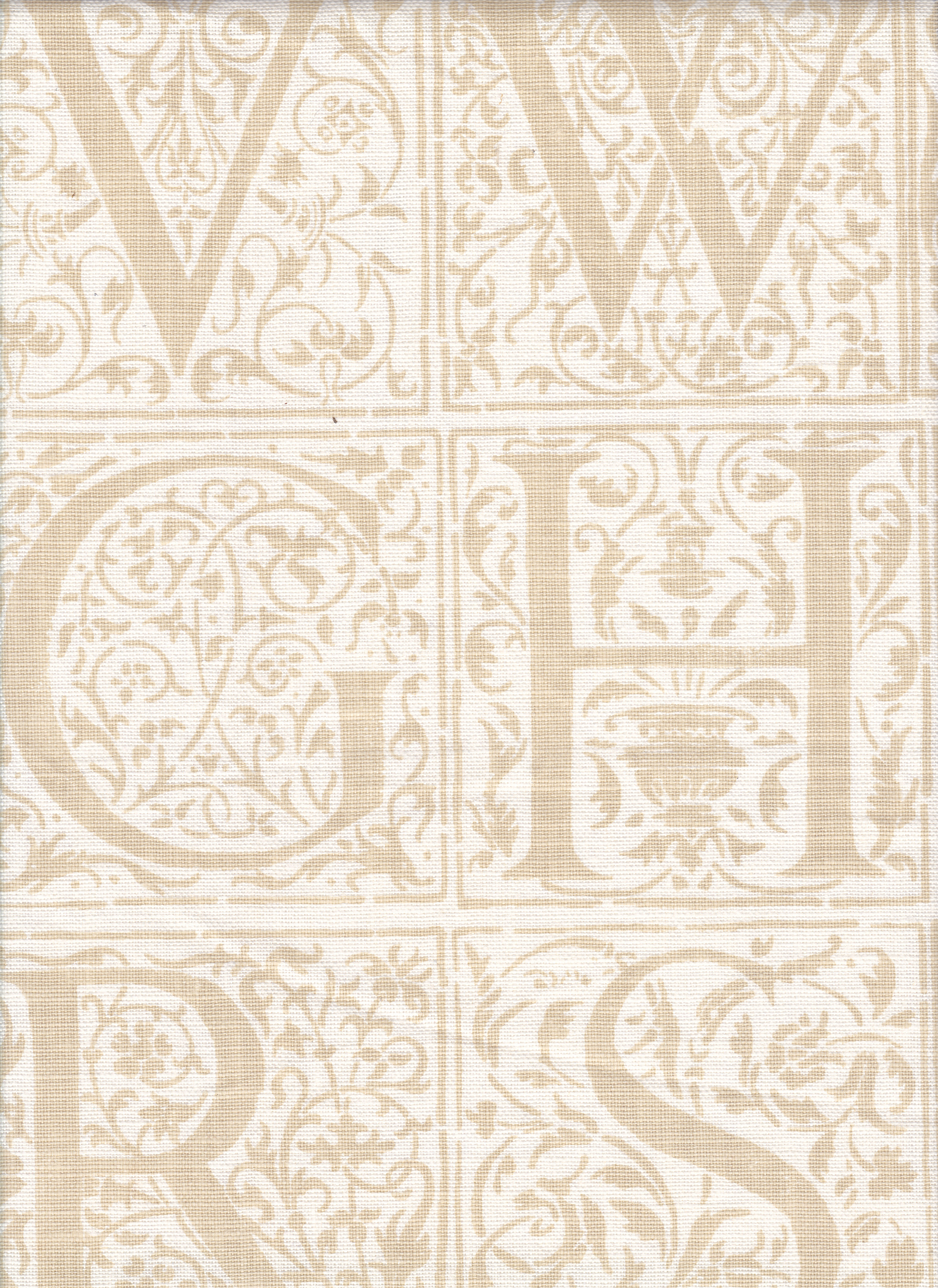 We originally hand cut stencils of all of the letters of the alphabet to hand stencil cocktail napkins, Christmas stockings and lavendar filled sachet pillows. The letters have been taken from books and manuscripts from the Italian, German and French Renaissance. When we began doing our hand printed line of fabrics we thought to put all of the letters in order and create our Alphabet fabric, which has become very popular for nurseries, children's rooms and libraries.
