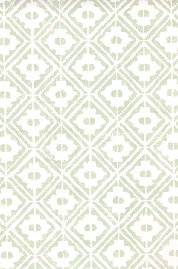 This design originated as a border for a Berainesque Swedish design for a wallpaper in the 18th century. Named for Jean Berain, a 17th century French designer and draughtsman, we realized that hand stenciling the border repeatedly would make an excellent allover design in a small scale, hand printed in any number of stock and custom colorways.