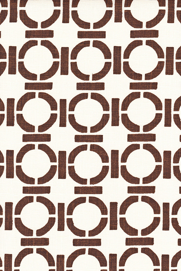 Adapted from the chain link design on a silk pocket square, by hand cutting a stencil of the design we were able to open it up and create this crisp, geometric, contemporary design that reminded us of swinging London. Originally a one color design, we are now able to offer this design in two colors, which opens up and endless array of custom colored hand printed options.