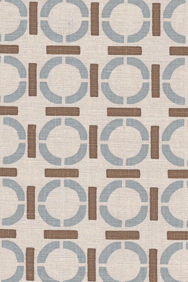 Adapted from the chain link design on a silk pocket square, by hand cutting a stencil of the design we were able to open it up and create this crisp, geometric, contemporary design that reminded us of swinging London. Originally a one color design, we are now able to offer this design in two colors, which opens up and endless array of custom colored hand printed options.