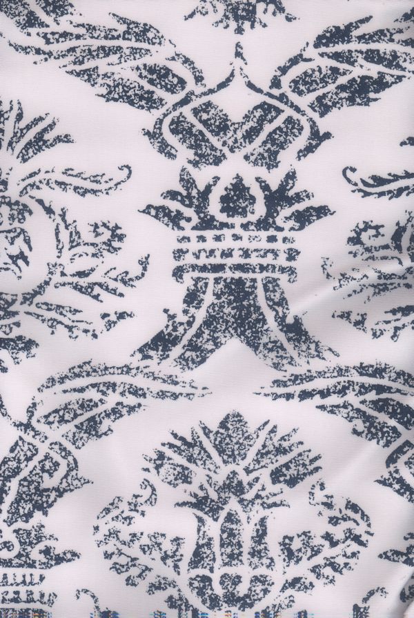 One of the most successful and satisfying collaborations in decorative arts history was that between the Venetian and Ottoman empires. Italian Renaissance damasks were interpreted by Ottoman weavers, creating textile designs that seem familiar yet exotic, but always unique. We found a fragment of this design and hand cut a stencil of it, creating one of our favorite large scale prints.