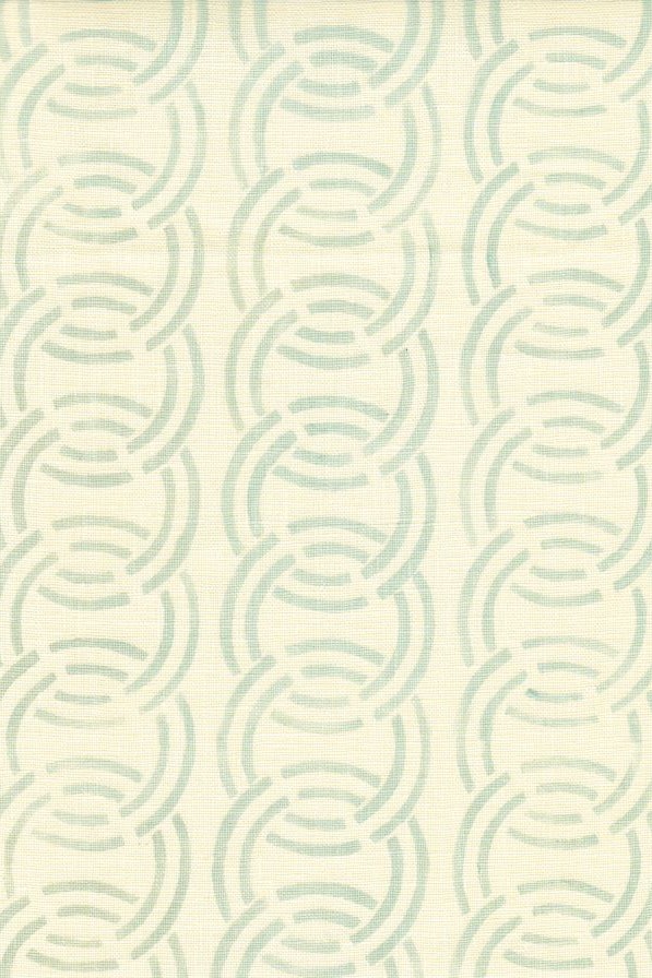 This intriguing design originated as a Japanese folk textile from the Meiji period of 19th century Japan. We hand cut a stencil of the design and began hand printing it on crisp linen. The linked circle design has a surprisingly contemporary feel to it.