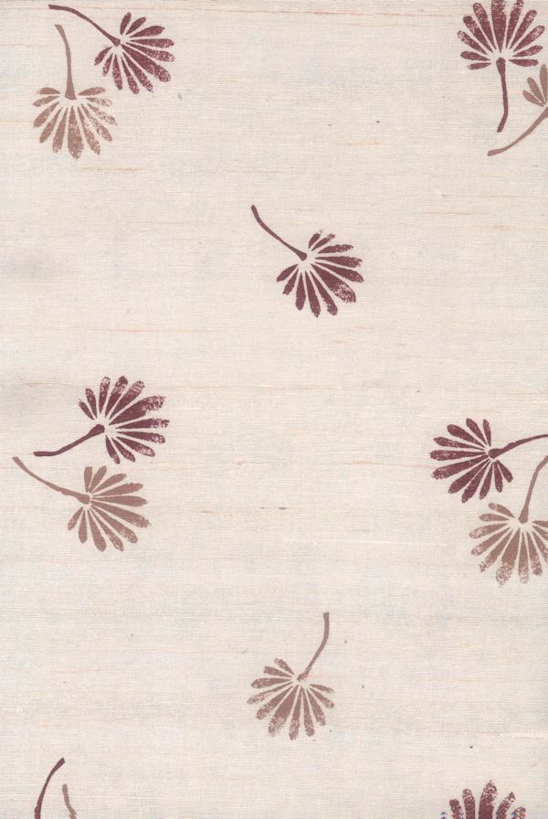We loved this feather fan motif so much that we created the Kyoto design for it. Originally, it was a single leaf like image from the late Edo period of 19th century Japan. After we hand cut a stencil of it, we grouped them singly and in pairs to create a gentle free fall of leaves in a two color hand print.