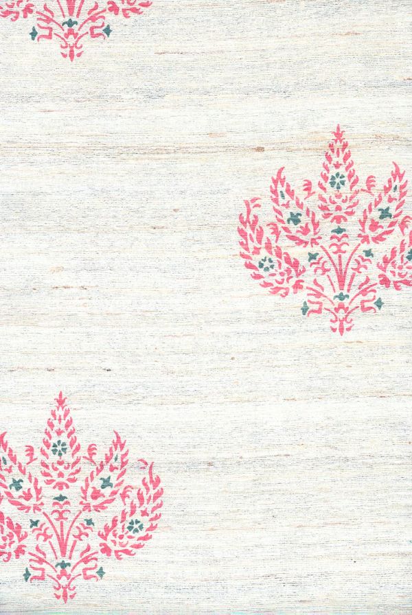 This unusually shaped medallion which resembles the branches of a flowering tree was embroidered onto a silk fabric of one of the Ottoman sultans and can be seen in displayed in the Topkapi Palace in Istanbul. Once we cut a stencil of this design by hand, we were able to isolate the flowers and can now print it in two colors.