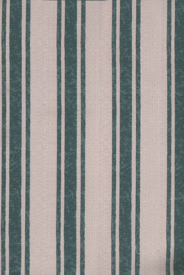 This unusual stripe was designed for a custom hand printed and hand stenciled project. The textured stippling of the strip allowed it to be joined at the repeat without being visible. The thin stripes on either side of the wider stripe were hand stenciled in gold for the original project. It can now be hand printed in any three colors besides the stock colorways.