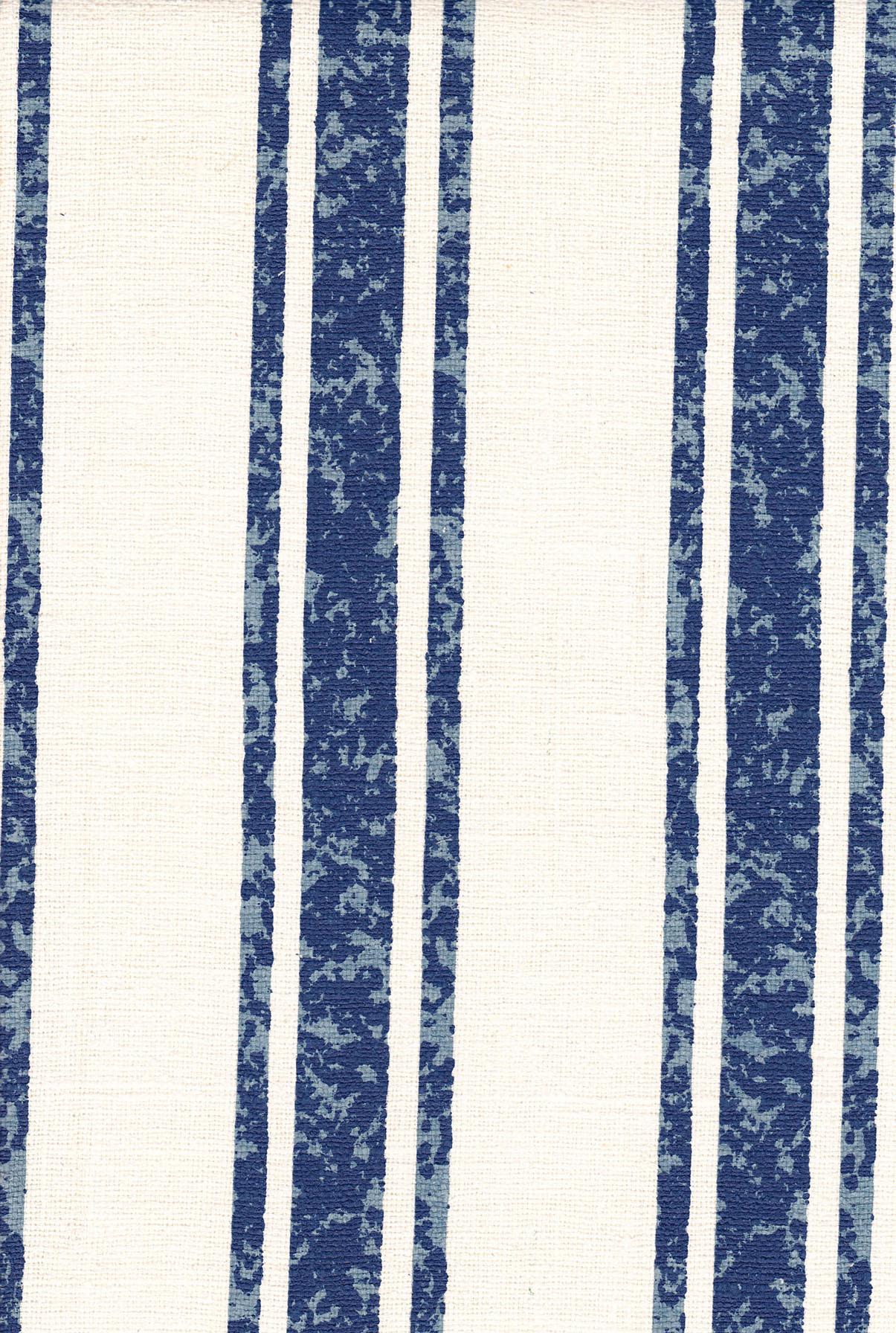 This unusual stripe was designed for a custom hand printed and hand stenciled project. The textured stippling of the strip allowed it to be joined at the repeat without being visible. The thin stripes on either side of the wider stripe were hand stenciled in gold for the original project. It can now be hand printed in any three colors besides the stock colorways.