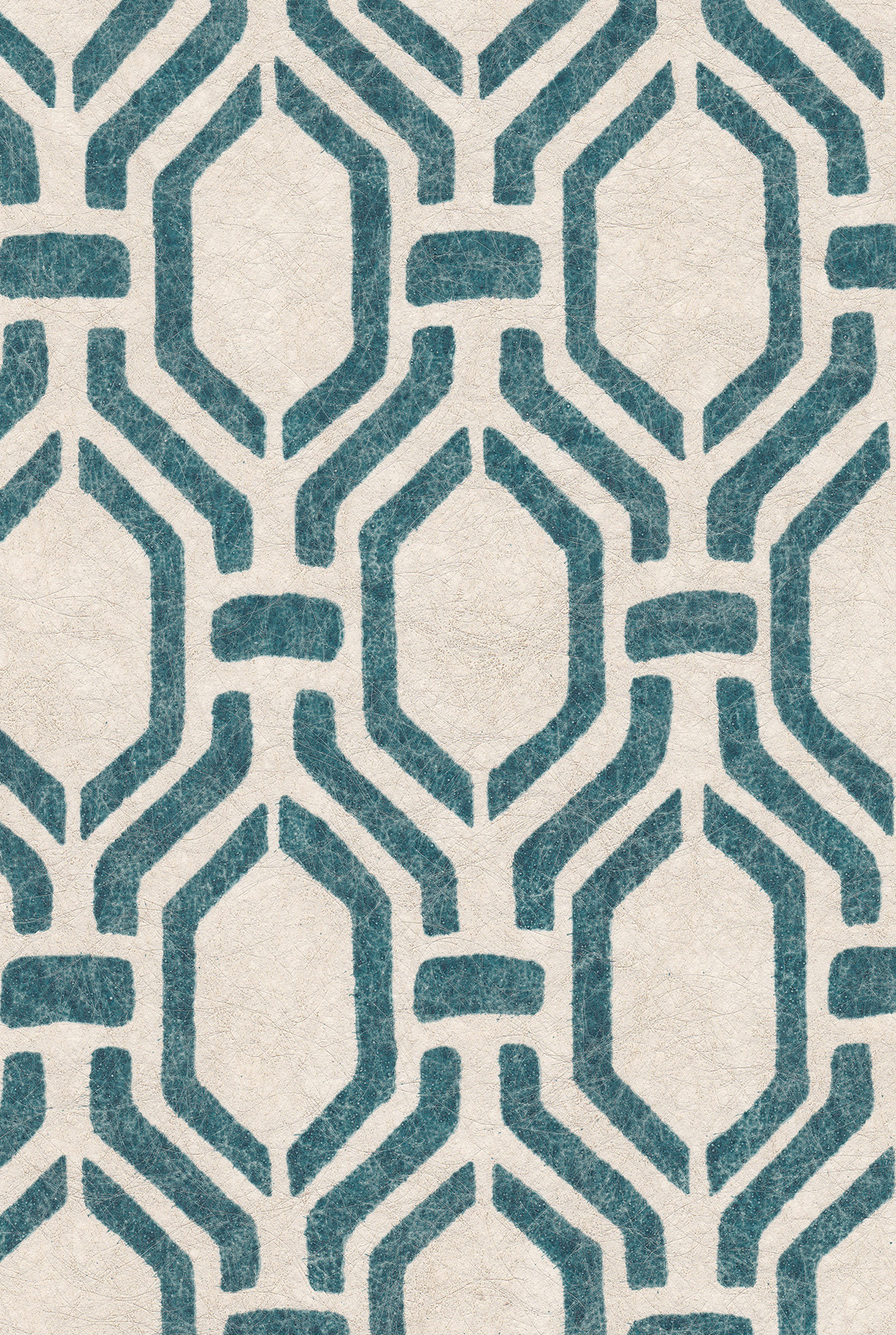 This design as well as our other design Valencia, was the result of a custom project for a top designer's international client. They were looking for a small scale lattice design to be hand stenciled directly onto the walls. Years later, we hand stenciled the design onto silk fabric for pillows and decided to turn the stencil into a silkscreen for fabric and wallpaper.