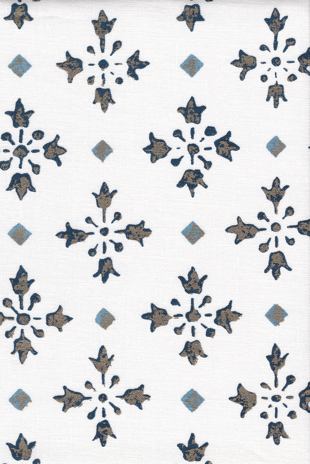 We took the name for this design from the Italian word for snowflake, which is what this delicate design motif reminded us of when we first saw it. It is actually but one element in a Belgian surface decoration from the Renaissance. We cut a stencil of it by hand and then created a silkscreen in three colors.