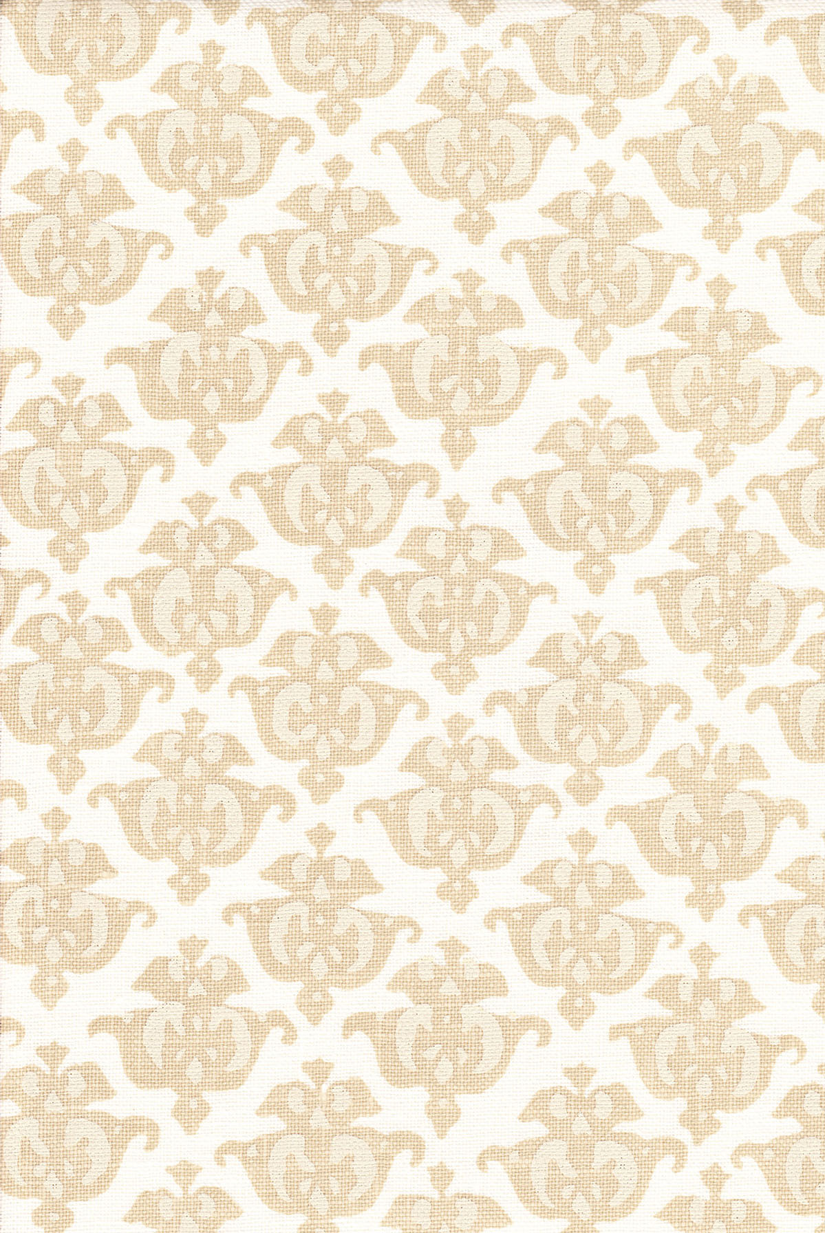 This unusual small scale print from the Italian Renaissance was derived from an English portrait of 1540. A top designer commissioned it for the chairs in a dining room filled with Impressionist paintings. The hand printed linen was then lightly sanded to give it a slightly distressed look, making it truly custom hand printed and sanded.