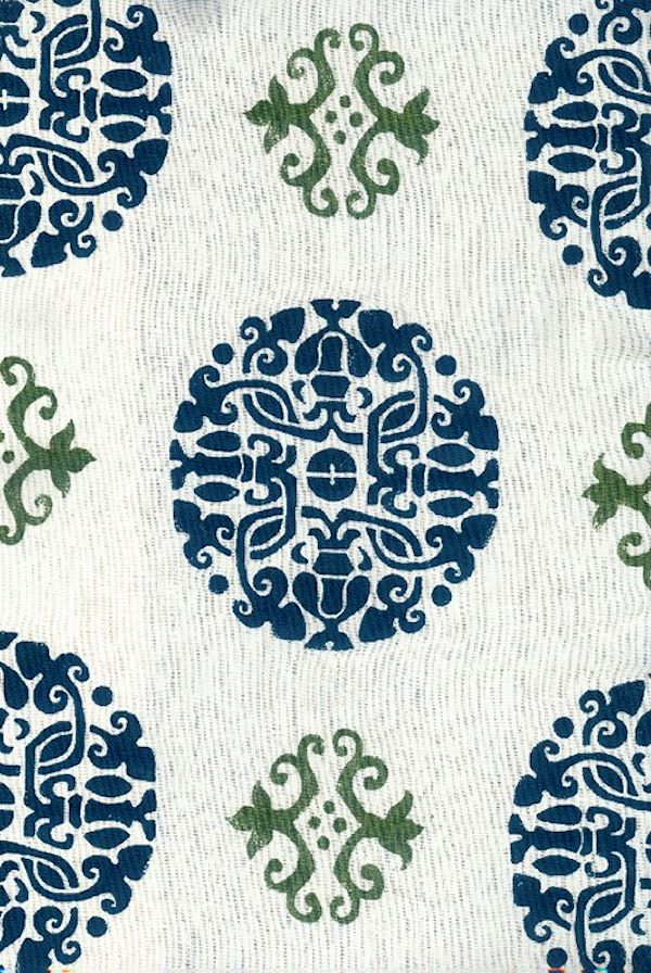 We named this design after the magical Moroccan city despite the fact that the two motifs in it are Coptic in origin. We saw a picture of a room that one of our favorite designers did using a similar pattern so we hand cut stencils of these two medallions in differing sizes and then hand printed them in two colors for a very Tangiers feel.