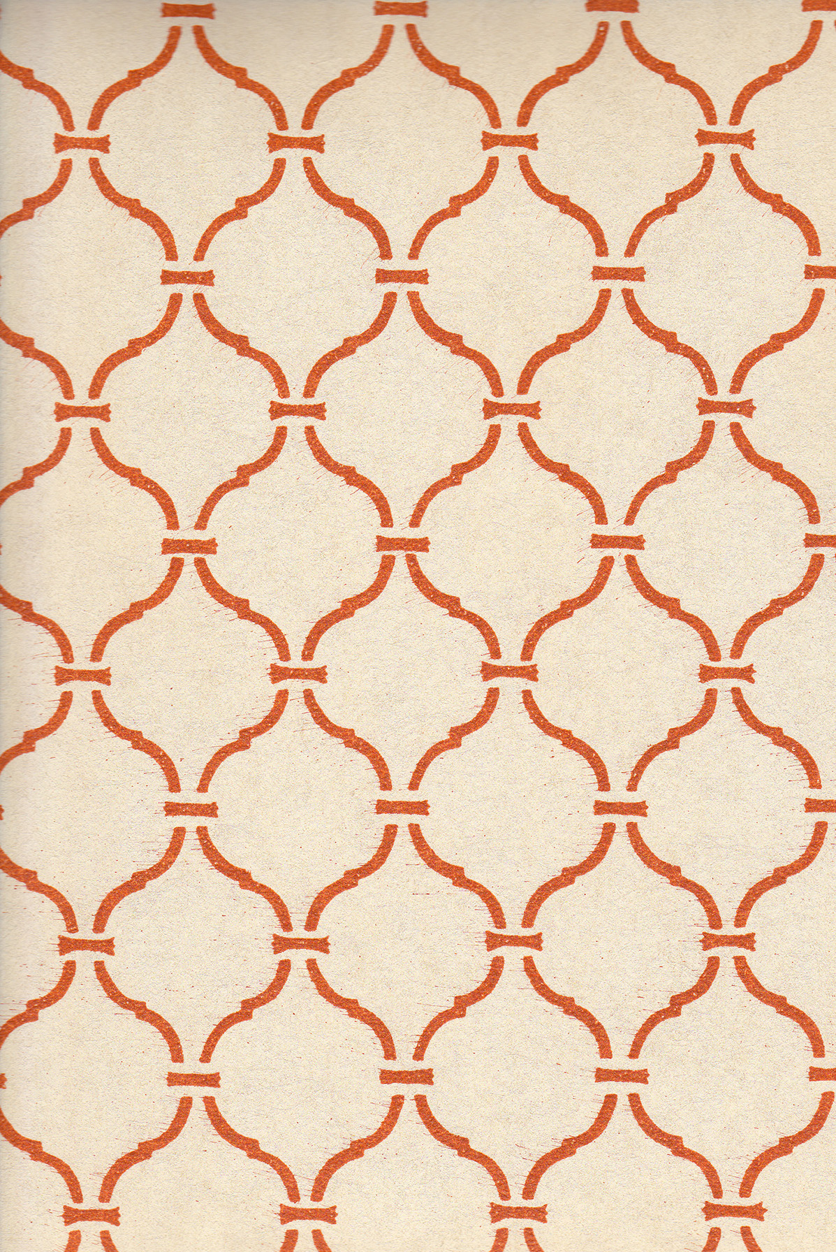 Like our other design, Monza, Valencia was a commissioned custom design that we hand cut stencils for, to be stenciled directly onto the walls of a bedroom. Years later we tried hand stenciling this design onto silk fabric and realized how beautiful it would be as hand printed fabric and wallpaper.